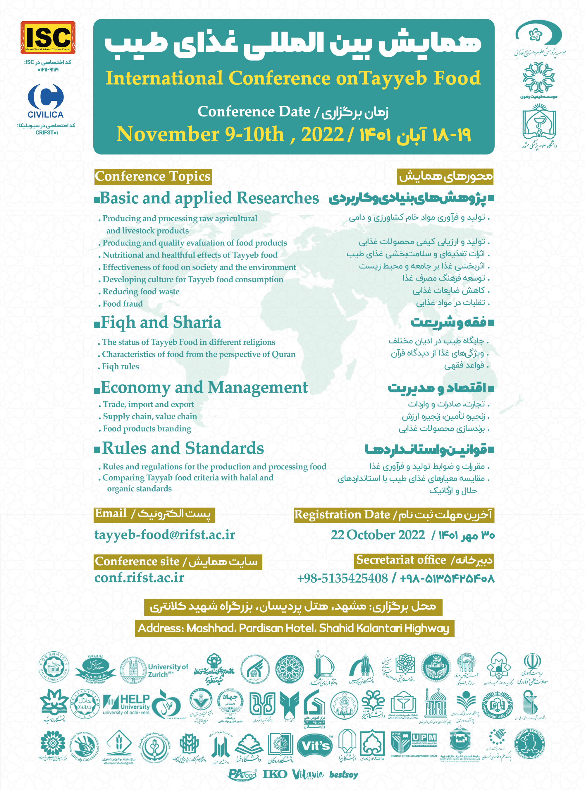 آخرین مهلت ارسال مقالات تا 15 مهر ماه زمان برگزاری : 19-18 آبان ماه 1401 آخرین مهلت ثبت نام :30 مهر ماه 1401 جهت اطلاعات بیشتر با شماره زیر تماس حاصل فرمایید. 05135425408 |