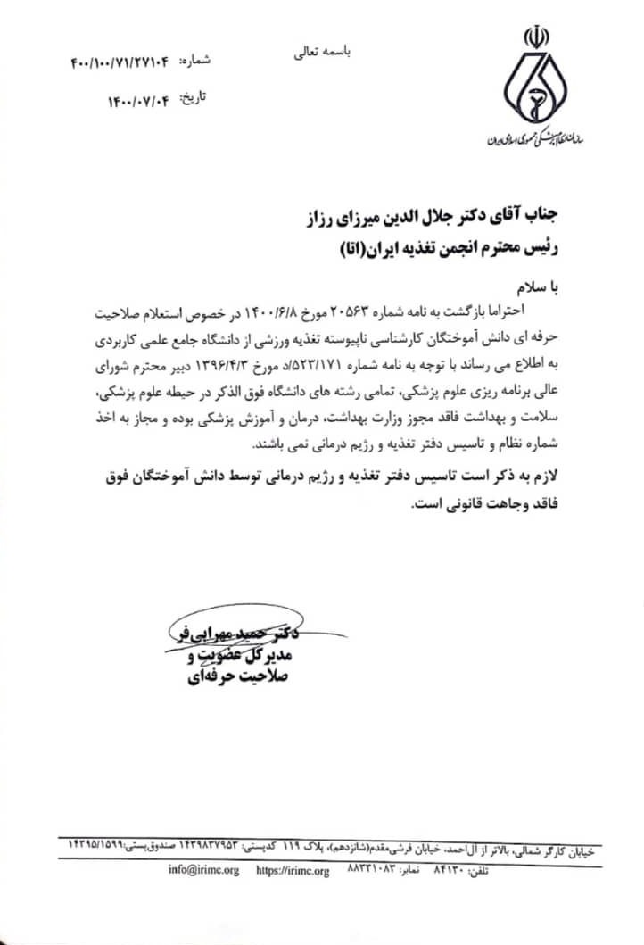 خراسانچی زهرا اخبار 26 مهر 1400 بازدید: 146 امتیاز: ( 0 Rating ) پاسخ به استعلام صلاحیت حرفه ای دانش آموختگان کارشناسی ناپیوسته تغذیه ورزشی از دانشگاه جامع علمی کاربردی امتیاز کاربران لطفا رای دهید رای 1 رای 2 رای 3 رای 4 رای 5 قبلی بعدی